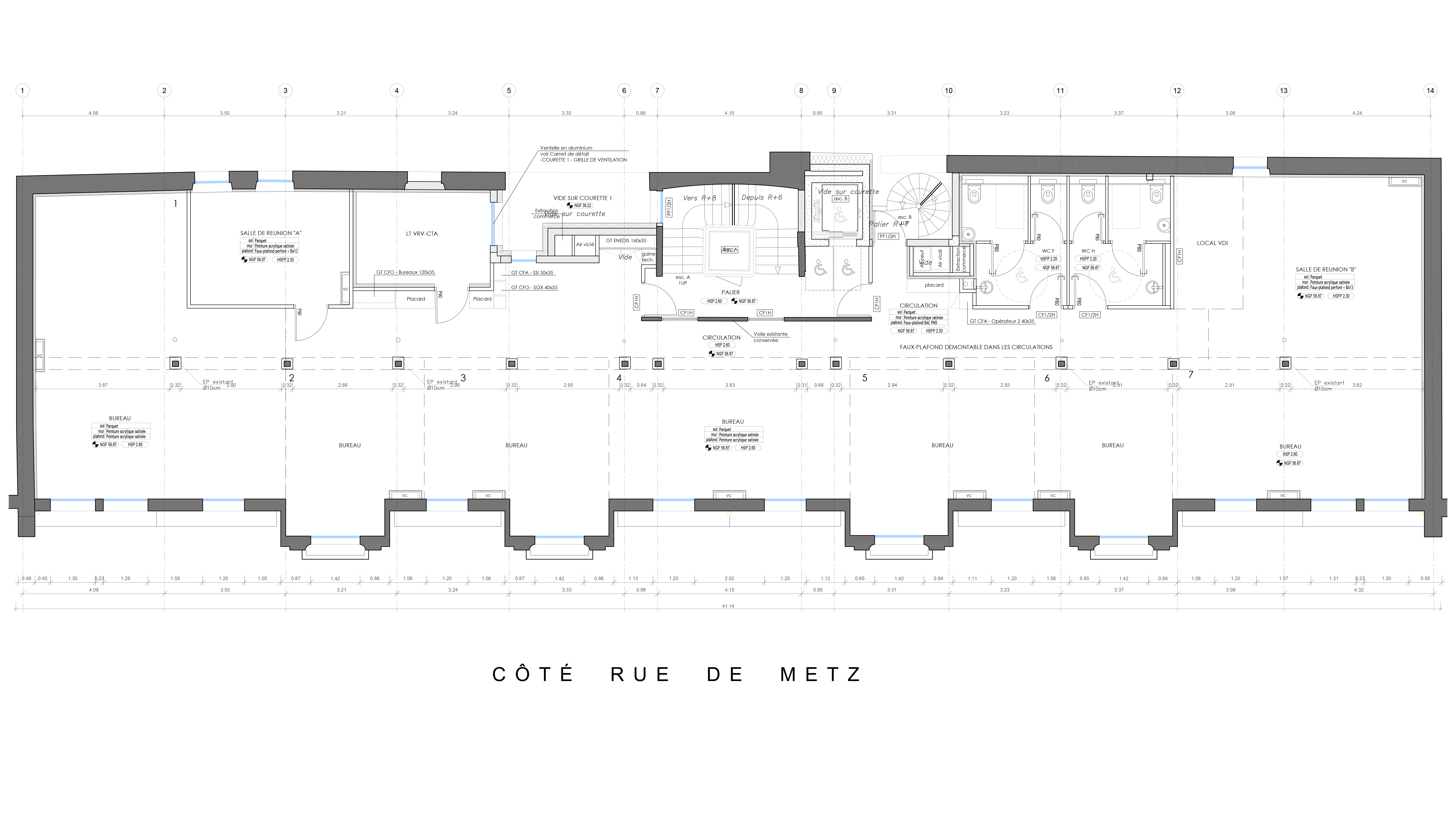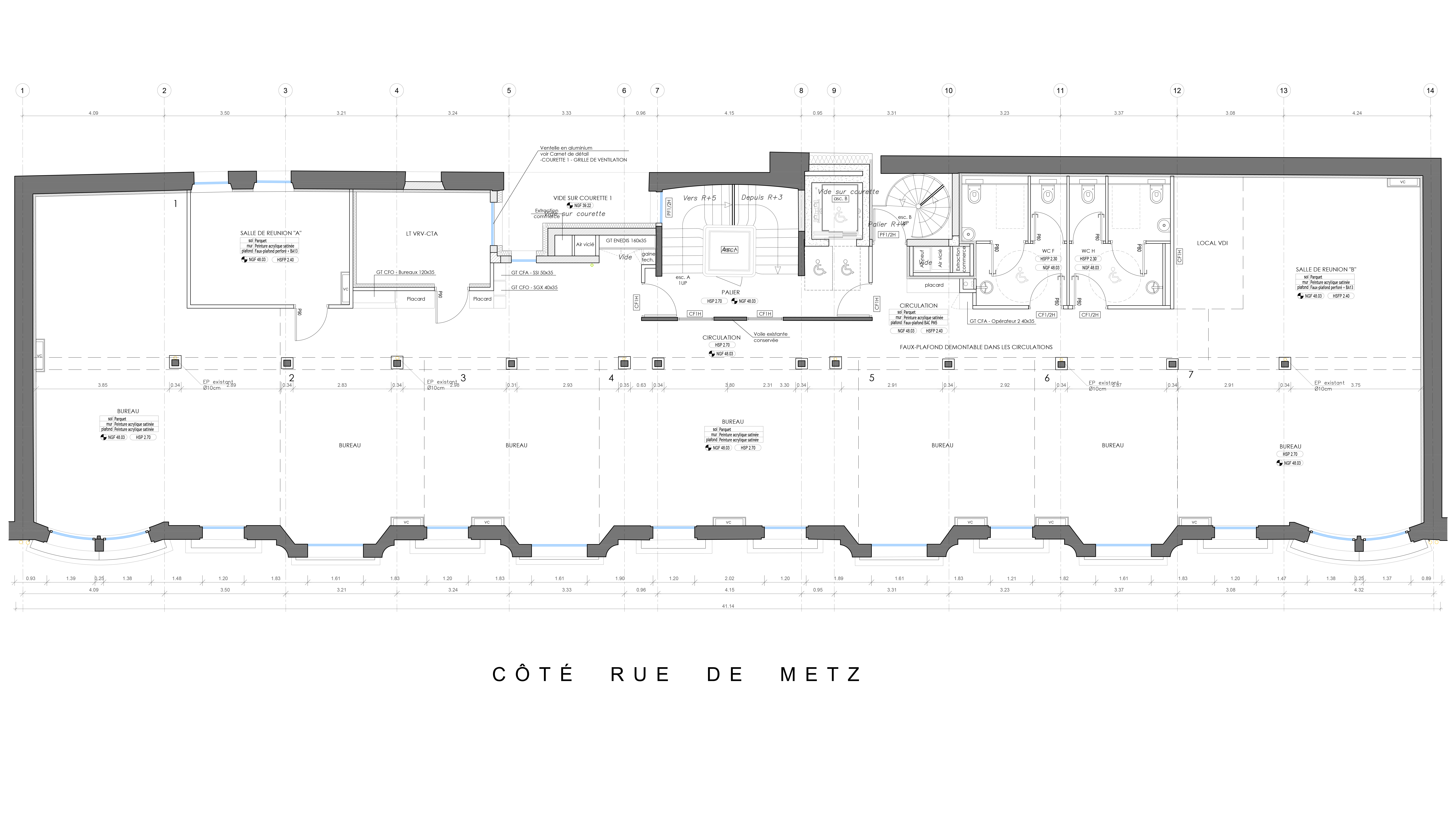 Les paliers seront valorisés avec un parquet neuf, des portes palières vitrés et les luminaires tubulaires de type Zangra.