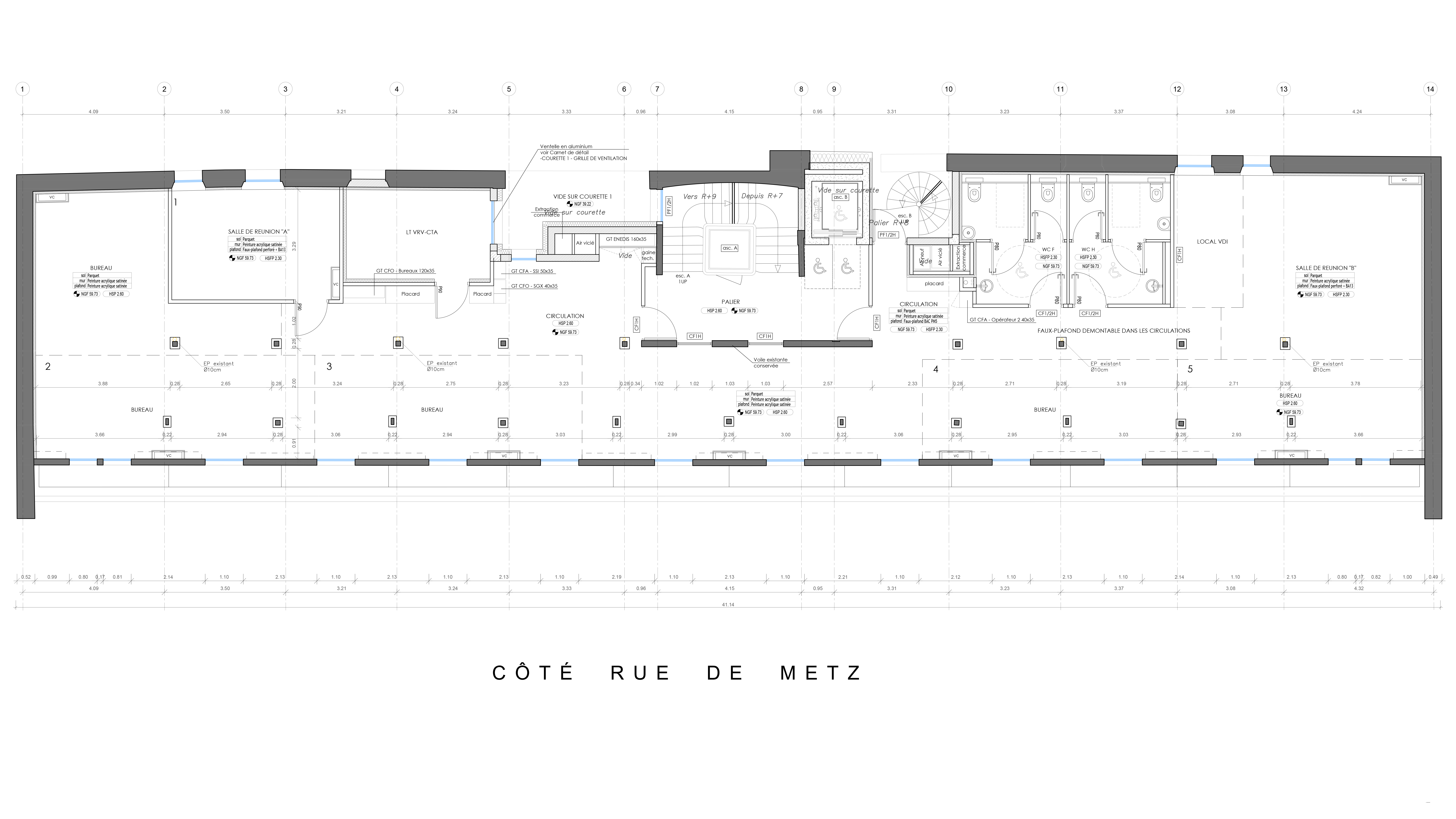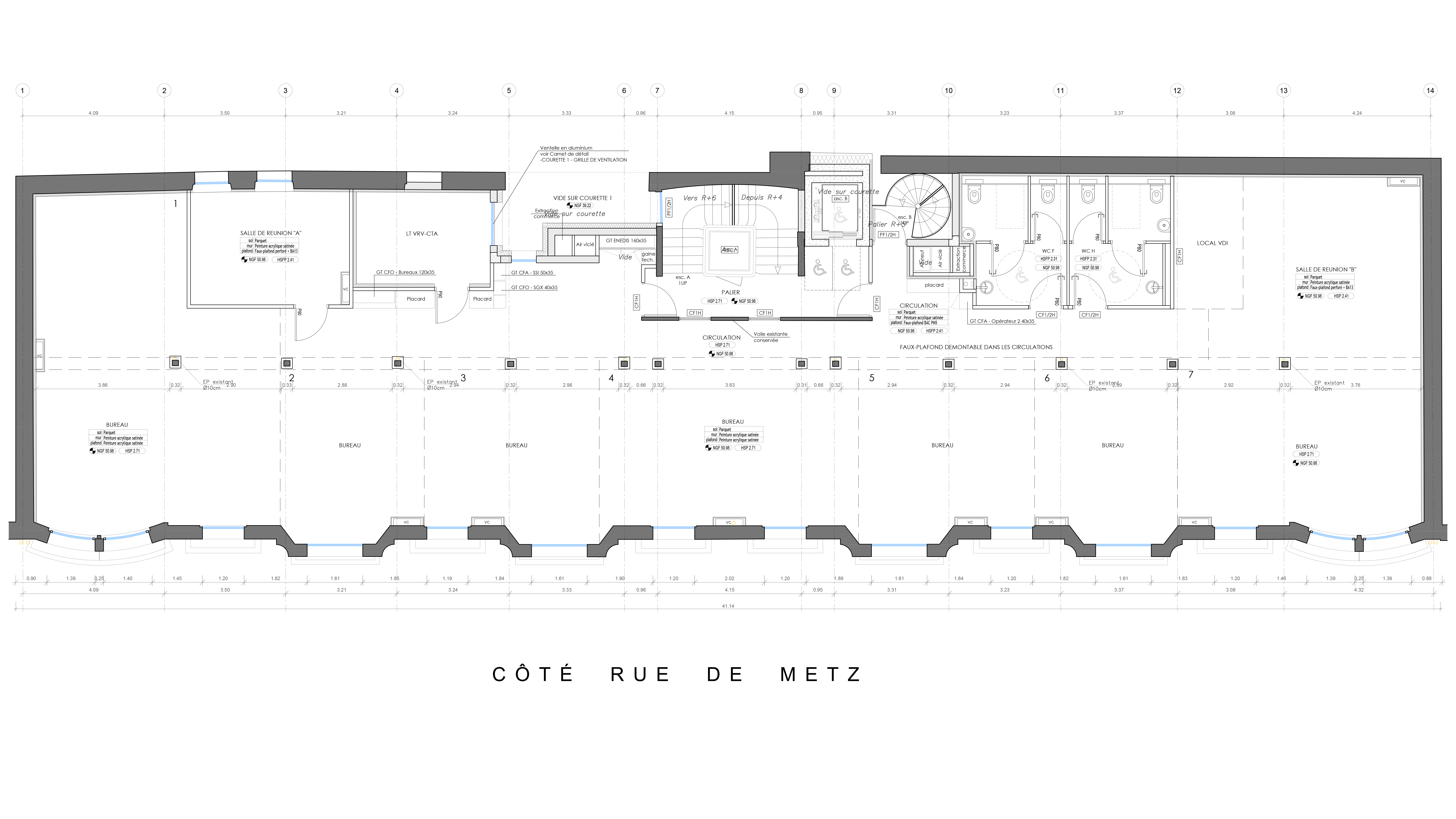 — Distribution électrique dans les planchers et en saignés au plafond selon un calepinage prédéfini.