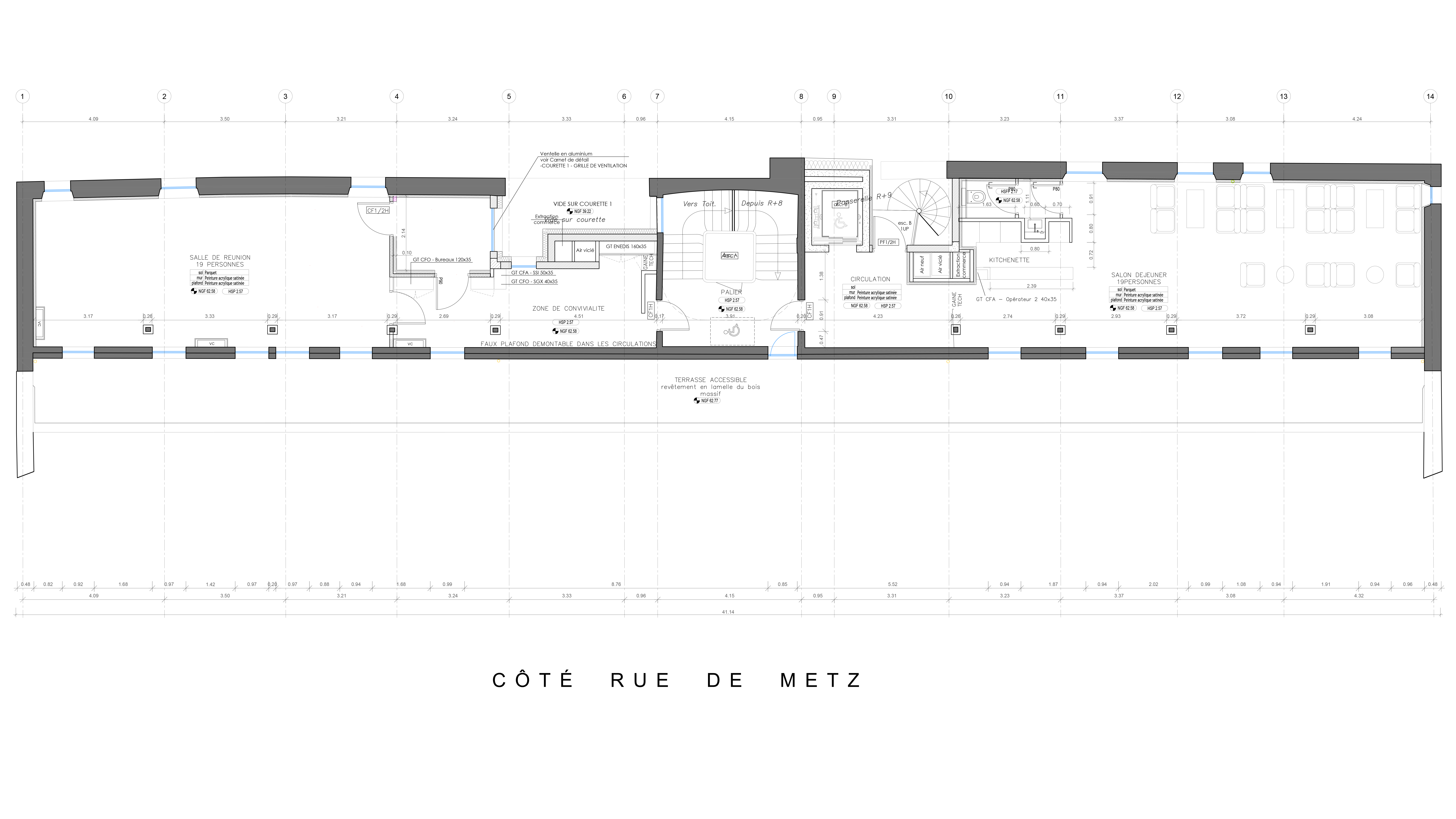 40 m² d’espace de convivialité, une salle de restaurant au R+9 et une salle de réunion de 38 m² au R+9.